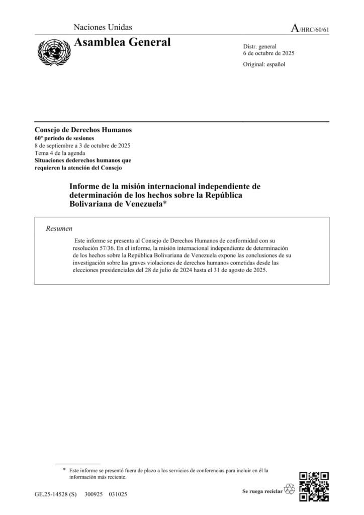 Estos datos han sido documentados y respaldados por informes de la Organización de las Naciones Unidas (ONU), la Organización de los Estados Americanos (OEA), el Foro Penal, el Observatorio Venezolano de Violencia (OVV) y Amnistía Internacional, y constituyen el sustento probatorio inicial de la causa.
