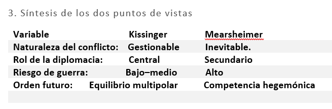 – Desde la lógica de Henry Kissinger el conflicto es gestionable. Hay margen para el equilibrio, la diplomacia y la coexistencia estratégica.