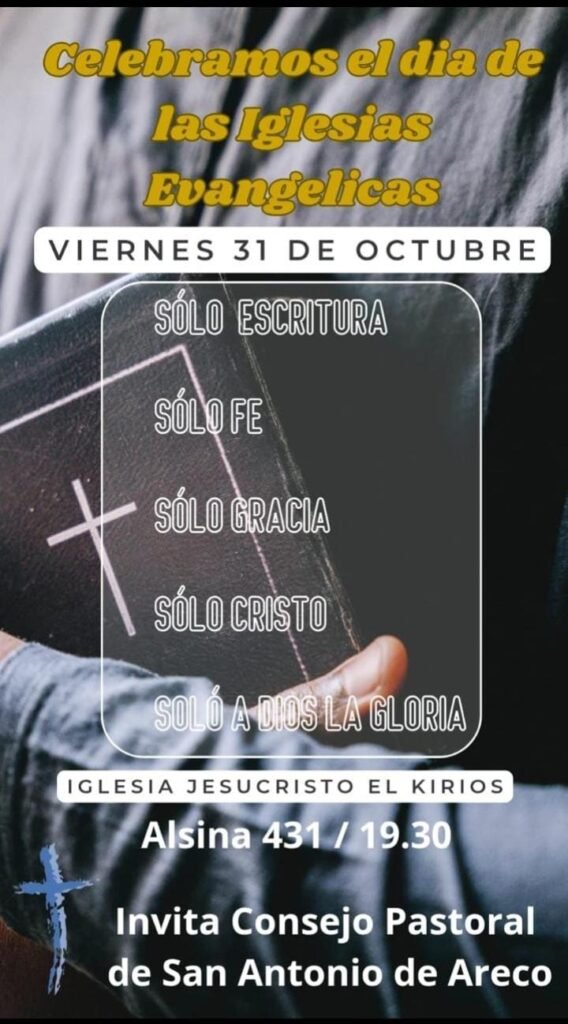 Este viernes 31 se celebra el Día de la Iglesia Evangélica bajo el lema: Solo Escritura, Solo Fe, Solo Gracia, Solo Cristo, Solo a Dios la Gloria.