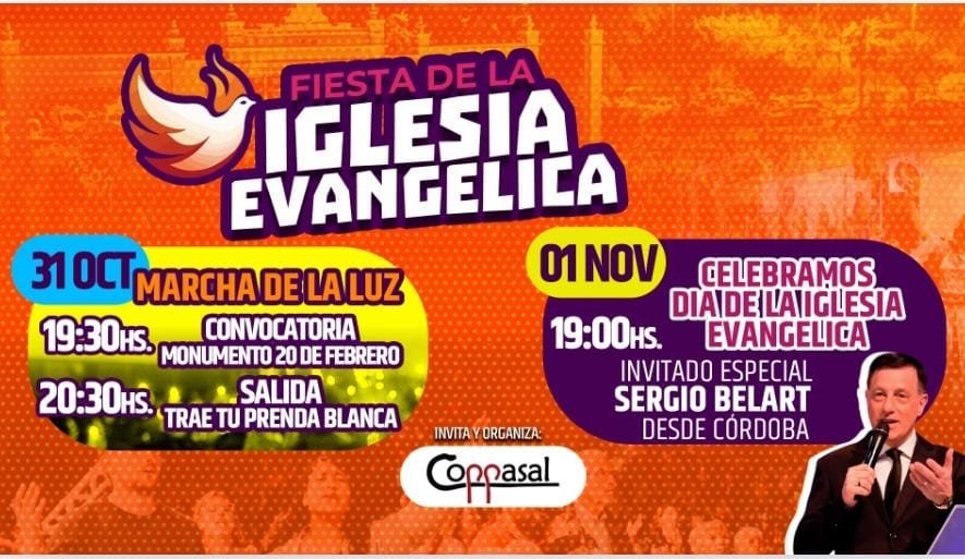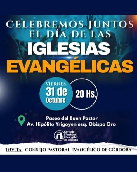 Este viernes 31 de octubre, la ciudad de Córdoba se une en una jornada de fe y gratitud para celebrar el Día de la Iglesia Evangélica, una fecha que resalta los valores de la fe, la esperanza y el servicio a la comunidad. El encuentro es organizado por el Consejo Pastoral de Córdoba, que invita a todas las congregaciones y familias a participar de este tiempo de adoración y unidad. Una oportunidad para dar gracias a Dios y reafirmar juntos los fundamentos de nuestra fe.