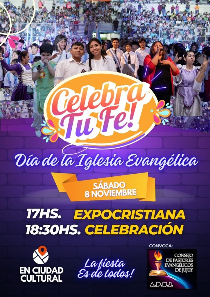 El próximo sábado 8 de noviembre, la provincia de Jujuy será escenario de la celebración del Día de la Iglesia Evangélica, organizada por el Consejo de Pastores Evangélicos de Jujuy. La jornada se desarrollará en Ciudad Cultural, con una Expocristiana a Hs 17 :00 y la celebración central Hs 18:30 , ofreciendo un espacio abierto a toda la comunidad. Desde la organización destacaron que “la fiesta es de todos”, invitando a los jujeños a participar de este encuentro de fe, unidad y alegría.